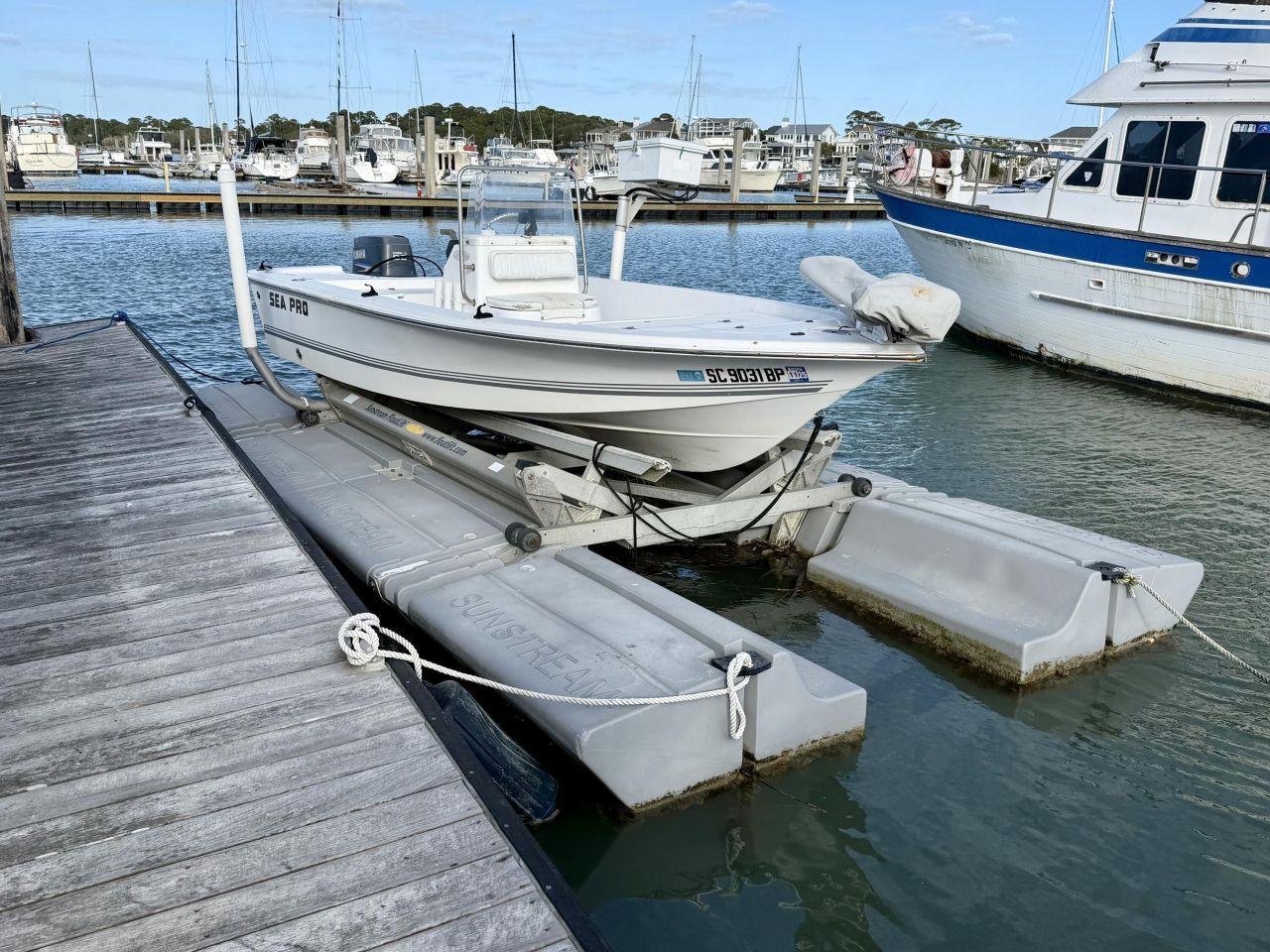 Located in the highly desirable Sunset Cay Marina, this well-positioned boat slip offers a fantastic opportunity for easy access to the water and beautiful Lowcountry boating. The slip includes a Sunstream boat lift (approx. 5,500-6,000 lb capacity) featuring a new battery, new solar charger and all lines and hydraulics replaced within the last year, providing reliable and low-maintenance operation. A dock box is also included for convenient on-site storage.The slip is approximately 20' x 40' and can accommodate vessels up to about 55 feet overall length, while the lift is designed for boats up to roughly 21 feet long with an 8.5 ft beam.Sunset Cay Marina offers excellent amenities including gated entry, ample parking, a full-time dockmaster, bathrooms, water, electricity, and trash service. Owners and guests enjoy incredible sunset views and a prime location near the waterways around Folly Beach.HOA dues are $750 quarterly.Weekend stays are permitted, though the marina does not allow live-aboards.Don't miss this chance to secure a well-equipped slip in one of the area's most convenient and scenic marinas.